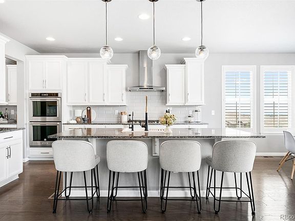 Stop the scroll & check us out! Stunning 5 bed, 4 bath home offers 5,000 finished square feet of thoughtfully designed living space with a main floor private study & guest room, elegant primary suite including every upgrade, bonus loft plus a fully finished basement, and 3-car split garage—all set on a secluded lot in the bluff boasting views upon views. The main level is open & bright with soaring ceilings, warm wide plank hardwoods, fireplace, rounded out by a perfectly appointed kitchen with crisp white cabinetry, brand new chef's choice faucet, and organized walk-in pantry. Take the sweeping staircase upstairs to the primary suite featuring classic board & batten, plantation shutters, and a beautiful landscape. The bathroom is dressed in timeless tile & countertops including a generous shower, soaking tub, and vanity space. Continue into the gorgeous custom walk-in closet that leads to a pinterest worthy laundry room with built in hampers and anything you would dream up to make this chore a joy. Secondary bedrooms share a dual vanity with a lock-off water closet, shower & bathtub. In the lower level, find a substantial game & rec space with an abundance of natural light, additional prep kitchen, and 5th bedroom adjacent to another full bathroom. Step outside to a backyard built for Colorado living on the expansive deck. Book a showing and spend some quality quiet time outside to fall in love with all Leyden Rock has to offer. Buyer to verify schools.