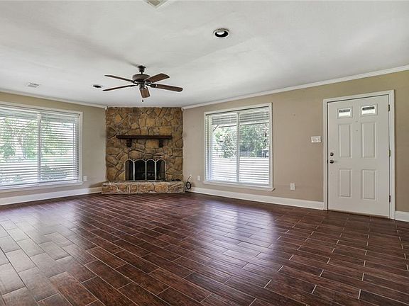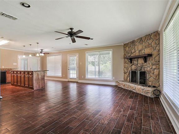 Clapboard ranch home on 1.3 acres! You’ll love watching nature from the serenity & shade of your wrap-around patio. Move-in-ready, sunny open-floor-plan w/low-maintenance plank flooring. Your XL den features corner-set stone fireplace. Kitchen includes granite counters, breakfast bar/center island, all stainless appliances. Big bonus: XL stained pine screened in porch, huge yard, shady carport. Peaceful location, no thru-traffic, close to the high school, 190 & Oak Knoll Country Club.