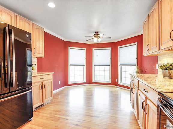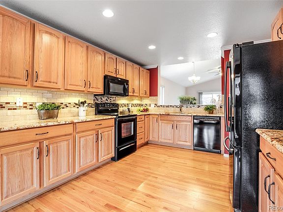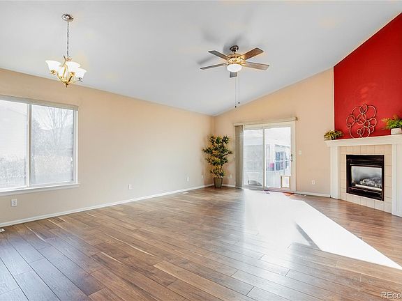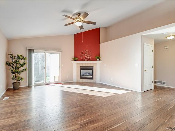 Located on a corner lot, this beautiful home is sure to impress. The warm and welcoming open floor plan is filled by natural light and enhanced by its soaring ceilings. Prepare impressive meals in the spacious gourmet kitchen with gorgeous granite countertops, newer appliances, pull-out lower cabinets, tile backsplash, 42-inch upper cabinets and a generous eating area. Flowing from the kitchen is a stunning great room with vaulted ceilings and gas fireplace. Exit through the sliding glass door onto the private patio and enjoy the enclosed hot tub gazebo(no hot tub) and low-maintenance yard. Retreat after a long day to the peaceful primary suite featuring a tranquil remodeled bathroom equipped with a large accessible shower with bench and beautiful tile work. Two additional bedrooms, a full bath, laundry room and a two-car garage complete the main level. An unfinished lower level provides plenty of room for storage. Special features include: hardwood floors, beautiful newer wide plank laminate flooring, newer carpet, newer roof (2015), solar panels (no lease), and A/C. Close to all the best amenities and Cherry Creek Schools! Welcome Home!