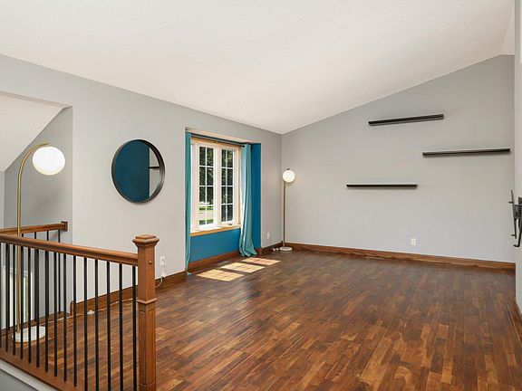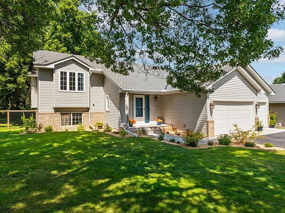 Nestled in a PRIME location, this home has so much offer! Thoughtfully designed layout features a spacious foyer with closet & tile floors, a sizable upper level living room with vaulted ceilings & southern facing windows (tons of natural light), functional kitchen, 2 full baths, & 3 bedrooms on one level. A main highlight is the home's walk-out lower level to a private backyard with a 16x15 deck & mature trees for privacy. The open concept kitchen & dining room features ample cabinet & counter space, quartz countertops, stainless steel appliances, & a breakfast bar for additional seating. Enjoy the large lower level living area with a cozy gas fireplace, bar area with butcher block countertops, newly remodeled full bathroom, & newer Smart/ Wi-Fi connected GE washer & dryer. Enjoy all of the features of a fully functional home AND have the opportunity to build equity by adding an additional bedroom and another living space or flex room in the lower level. Blaine schools, quick access to shopping, restaurants, parks, walking trails, and more!