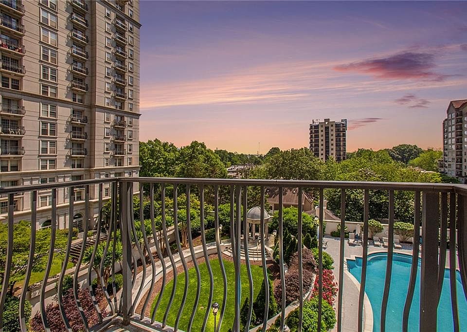This 1 bedroom, 1 bath unit, complete with a den, is ideally located in the heart of Midtown. The eastern views overlook the gazebo and gardens, providing an enchanting scenery and great morning light. This space is not only move-in ready but also offers a versatile den that can serve as a home office, extra bedroom, or nursery. Additional features include a pantry, a separate laundry room, a custom-built closet in the bathroom, and a spacious walk-in closet. The large balcony extends off the living room, facing Piedmont Park, perfect for relaxation. This unit offers significant value with its additional space and low fees. It comes with one assigned parking space in a secured garage. The building is a highrise luxury complex featuring top-notch amenities such as a 24/7 concierge, a recently renovated gym, a beautiful saline pool, two gardens (one with gas grills), a conference room, a library, a movie theater, and a club room. The location is exceptionally central, just half a block from Piedmont Park and adjacent to the new Colony Square shopping center. Museums, the Botanical Garden, Symphony, MARTA, and a myriad of restaurants and shops are all within a short walking distance, making it a prime spot for enjoying Midtown living at its finest.