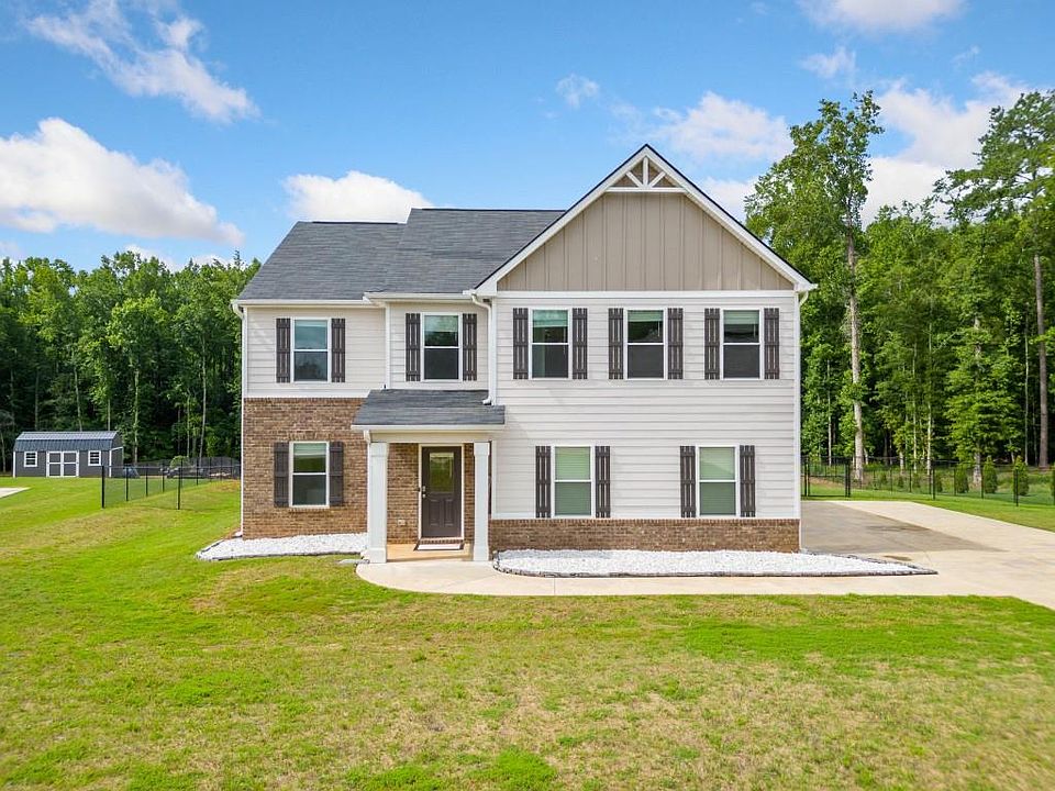 Welcome to this charming 4-bedroom, 2.5-bath residence nestled in Covington, in the sought after community of Sautee Bluff. Built in 2022 and meticulously maintained by the original owner, this home offers an unparalleled living experience. Situated on over an acre of land, features include a beautifully landscaped yard and direct access to a river at the back, perfect for nature lovers and outdoor enthusiasts. The expansive open floor plan seamlessly connects the living, dining, and kitchen areas, creating an inviting space for both relaxation and entertainment. Culinary enthusiasts will delight in the granite countertops, stainless steel appliances, and ample cabinetry, perfect for preparing gourmet meals. The four generously sized bedrooms feature large closets, ensuring plenty of storage space. The primary bedroom boasts a walk-in closet, an en-suite bath with dual vanities, and a soaking tub shower combo. A versatile loft space provides additional room for a home office, play area, or cozy reading nook. Enjoy the fresh ambiance with new paint throughout the home, accentuating the bright and airy feel. This home provides a perfect blend of rural tranquility and convenient access to local amenities, without the constraints of an HOA. Covington is known for its charming small-town feel, friendly community, and proximity to parks, schools, shopping, and dining options. Don't miss the opportunity to make this exceptional property your new home. Schedule a viewing today and experience the beauty and comfort of this Covington gem!