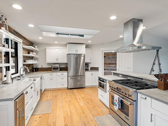 This incredible renovated 2224 SF home gives off Modern Farmhouse vibes. It combines a spacious floor plan with 4 bedrooms, 3 baths, a large open kitchen and living room, and a family room downstairs with all the modern conveniences and upgrades. The owners have lovingly updated this home with new wood flooring and carpeting, concrete countertops, stainless steel appliances, and a gas range/oven. Whitewashed brick accents the gas fireplace in the sunken living room and sliding doors open onto a massive deck. The large fenced backyard is complete with a hot tub and sauna for relaxing. It is located in a desirable neighborhood with large lots and established landscaping just minutes from shopping, medical clinics, Logan Health, Glacier High School, and Kids Sports Complex. Call Jeff Wilson (406) 249-5605 or your real estate professional with questions.