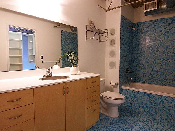 One of a kind floor plan in sought after Arizona Lofts. This 2/2 bath has an add'l loft/office space above kitchen. Owned by an architect and an interior designer, there are upgrades throughout including custom railings, painted ceilings and ductwork, and a ship's ladder to the loft addition. One of only six units w/ a completely private, fenced in yard, which sits high above the Arizona soccer fields. Building amenities include a gym, rooftop deck, fenced dog park, and two salt water pools with cabanas. This custom loft is a must see! Rent includes water. Move in date negotiable.
