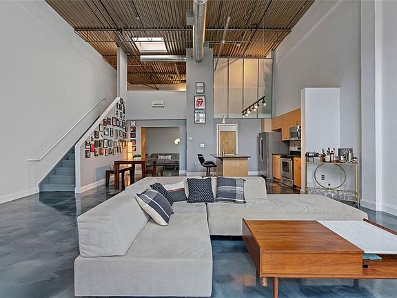 Spectacular loft located in Kirkwood! Arizona Lofts boasts two resort-style saltwater pools with cabanas, recently revamped fitness center, dog park and lush walking paths throughout complex to each unit. Enter into 20+ ft ceilings, epoxy finished concrete floors, and floor to ceiling windows allowing for an abundance of natural light and controlled by remote window shades! The main level features open concept kitchen with stone countertops, floating island, stainless-steel appliances and spacious dining area. The main level bedroom/study has access to full bath and laundry room with washer/dryer storage area. Don't miss the additional storage spaces offered in the main level bedroom/study! Upper level features the primary bedroom, full bath including a jetted spa tub & shower in tiled room, and a walk-in closet w/ custom storage system. The complex is conveniently located close to Pullman Yards, Ration & Dram, Kirkwood Village, and is 1/3 mile to MARTA rail station. Neighboring areas include Oakhurst, Candler Park, Edgewood, Little 5 Points and so many more with convenient proximity to the Atlanta Beltline. Unit comes w/1 assigned gated parking space.