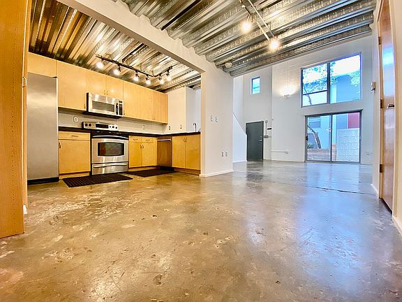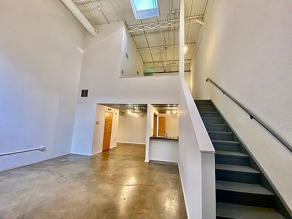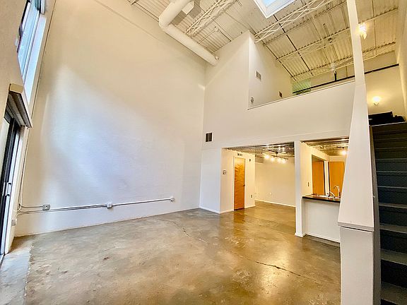 Modern loft at Arizona Lofts. 1 bedroom, 1.5 bathrooms, soaring ceilings, open floor plan. Upgraded kitchen - stainless steel appliances, breakfast bar, view to family room. breakfast area. Spacious family room - abundance of natural light, large window with view to patio, Large bedroom with high ceilings with lofted overlook to the living room, wonderful master bath with lots of counter space, jetted bathtub and walk in shower combo. Large patio. Hunter Douglas power blind with remote control for large high window privacy and manual blind for large lower patio window/ door. Community amenities include a swimming pool & and fitness center. One assigned space in gated parking and additional parking on street with easy access.