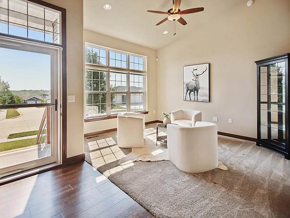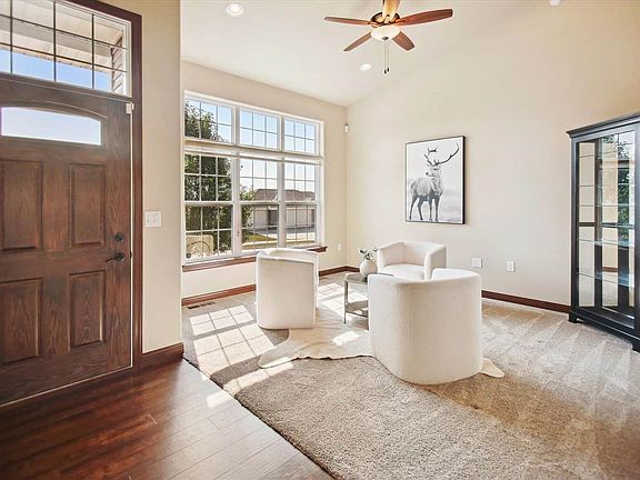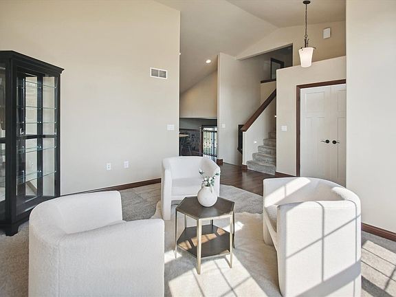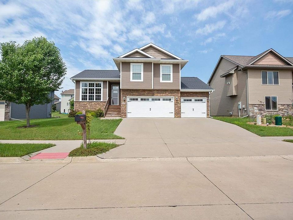 This inviting and well priced East Side four bedroom, four bath, move-in ready home has a warm feeling from the moment you walk in. Nestled within an established area that is still less than ten years old, schools, buses, walking paths, and nature options are nearby. There are many spaces to spread out in this home. Still, like most homes, the kitchen is the first room you will notice: bright and functional, the kitchen has an excellent slate appliance package, a gas range, lots of countertop space, H/W floors, an island, a separate pantry, eat-in dining space, and an outdoor deck that is connected. Enjoy the adjacent formal living room and a second, more casual family room with a cozy corner fireplace. The primary bedroom has a wonderfully sized walk-in closet and walk-in tiled en suite shower. Access a newly fenced backyard off the family room sliders and know that your fur baby will be safe to run outdoors. There is a central vac system, top-of-the-line blinds, ample basement storage, an oversized three-car garage, and much more. Enjoy the convenience of being near I-80, area schools, parks, restaurants, and shopping. Call today to schedule a showing of this gently lived-in, lovely home!