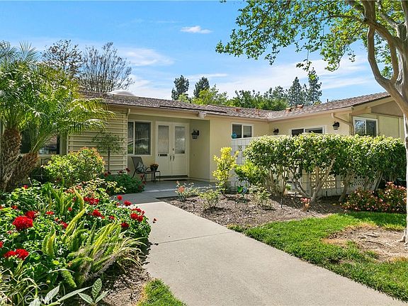 Absolutely Gorgeous Laguna Woods Cottage Single Level Home with No Steps and No One Above or Below! This Desired Granada Model on Avenida Majorca with Lush Views does not come on the market often! Two Bedrooms, Two Bathrooms with an Open Spacious Floorplan. Immaculate, Light and Bright! Wonderful Stunning Custom Remodel and Craftmanship. High Quality Materials and Architectural Work includes; Paint, Luxury SPC Water proof Flooring, Base Boards, Crown Molding, Fixtures, LED Recessed Lighting, Newer Heating/Air Conditioning system, Inside Laundry with Newer Full sized Washer/Dryer. European Style Open Kitchen with Newer Designed Cabinets, Quartz Countertops, Glass Backsplash, Under Cabinets Lighting, Stainless Appliances. Fully Remodeled Bathrooms and primary bathroom with Dual Sinks, Newer Double Pane Windows with Custom Blinds throughout. Inviting Living Room with Skylight, Entertainment Space with electric Fireplace, Beautiful Ledgestone and 65" Space for TV. Relax in your private custom Atrium sitting area right off your Dining area. Enjoy your Private Beautiful Garden Patio/Yard with Views of the Lush Neighborhood. You can Access your Private patio from the lovely primary suite as well and adds to your outside living space. Parking is close by, one car covered carport with large storage area and guest parking. This Location is prime, a short walk to the Aliso Park and Creek. Something this Beautiful does not come up often. This is your opportunity to own this home and live here! The Highly Desired Laguna Woods Gated Community! Enjoy all the Activities, Amenities and Neighbors here at Laguna Woods!... Stop by and see the Beautiful Neighborhood! Welcome Home!! Where Your New Adventures Begin!
