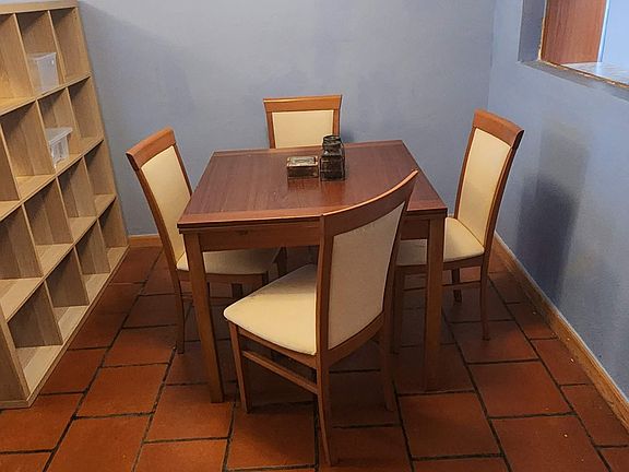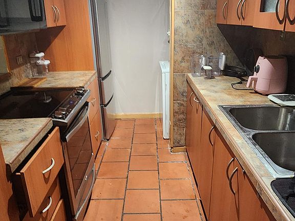 First floor townhouse-style apartment with two floors. Two bedrooms on the second-floor measuring 14'x12' and 12'x12'. Has a full bathroom on the second floor, and a half bathroom on the first floor. One assigned parking spot in front of unit. First floor has a balcony and a separate roofed terrace, ideal for storage. Unit includes water softener. The master bedroom includes a TGM mini-split A/C; the additional room has a Midea window mini-split. The following furniture (visible in the photos) is included: the dining table set, and sofa. The following appliances are included: refrigerator, microwave, stove, dryer/washing machine. Includes an office desk. Renter pays all utilities. Available in late September 2024. Minimum 1 year lease. No smoking. The landlord will pay HOA fees, A/C maintenance, and water softener maintenance. Renter pays all utilities.