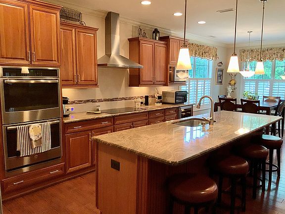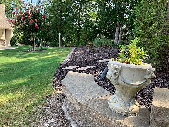 This beautiful home is located In quiet cul de sac that butts up to a wooded area. The home has been extensively landscaped and has a very large patio with sitting walls, landscape lighting, irrigation system and landscape curbing. The interior of the home has numerous upgrades such as double sided stone fireplace, extensive molding, sound system throughout home, 10 foot island in kitchen with granite countertops in kitchen and bathrooms, security system, central vac, custom MBR closet and pantry and tinted windows. Tiled sunroom with Easy Breeze windows that enjoys the double sided fireplace and TV above fireplace. Enlarged garage that fits 2 cars and a golf cart. Lawn maintenance included in HOA. Home price includes washer, dryer, 32 cubic refrigerator and wine refrigerator.