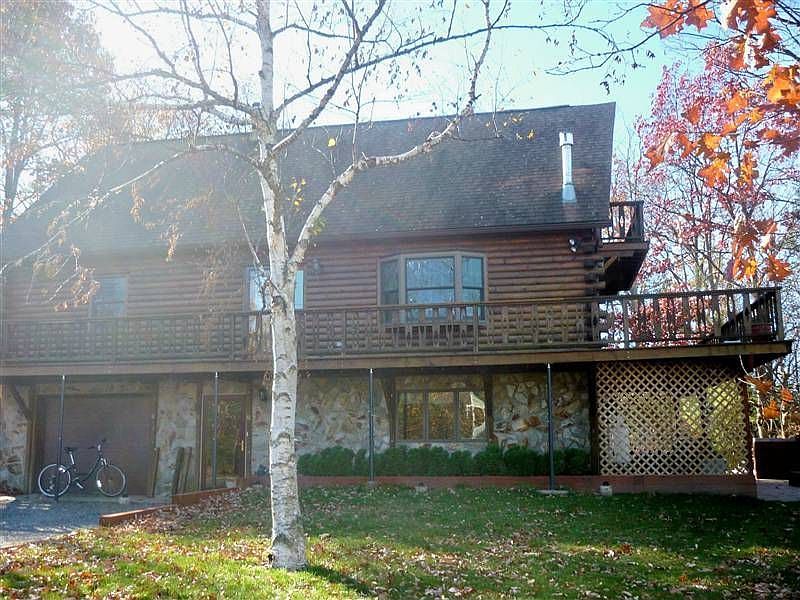 Nestled in the woods with seasonal mountain and reservoir views you’ll find your future home or home away from home to relax and unwind in. The main level has an open floor plan with vaulted beamed ceilings over the living room with its majestic stone fireplace, hard wood flooring, dining room and kitchen. Walk out to your massive deck and enjoy the county air and the tranquil sound of the pine trees. Also on this level are two bedrooms and a full bath. Wander upstairs to a large open great room to be used to fit any of your needs, game room, office, family room, an additional sleeping area and more. It overlooks the roaring fireplace on the main floor and has a smaller walk out deck of its own. The master bedroom with ample natural light has a private bath. The lower level is finished with a large living area, its own efficiency kitchen and full bath, wonderful for guests, visiting family members or a possible rental. The walkout sliders lead you to a patio to enjoy the