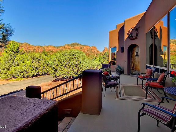 Beautiful SW custom 1 level living on elevated site. Panoramic Red Rock views including Cathedral Rock dead-on. Backs to NFS and rear of subdivision for maximum serenity and privacy. 2 master suites. Den could be 3rd bedroom. Custom chef's kitchen w/ Viking gas cooktop, Viking double wall ovens, warming drawer and 2 yr old Subzero fridge. 8' Alder doors, alder cabinets throughout. Decorator touches throughout including custom window treatments and decorator paint. Covered paver patio looks out to forest. Front deck has enormous red rock views. Oversized finished 4-car garage w/ storage and work bench. Walk to Oak Creek Golf. 2 miles to Red Rock Crossing. Everything done to move right in. Complete solar added 2018