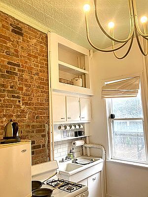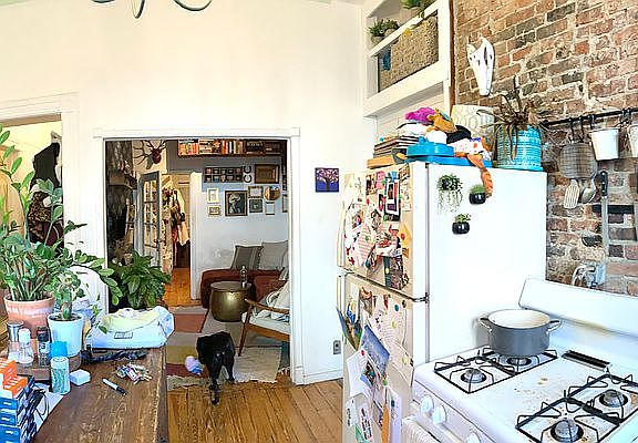 SPACIOUS CHARMING TRADITIONAL 1.5 BEDROOM with YARD ACCESS for MAY 1st MOVING located on Calyer Street by Manhattan Avenue, only 1 block to Greenpoint Ave G Train and plentiful Manhattan Ave Stores Large Eat-In Kitchen has access to shared large fenced yard Double door opening leads to Living Room; Office is separated from Spacious Boxed Bedroom by double glass packet door entry way extends through mud room where you can nicely store your shoes and coats full bathroom was recently retiled by white subway tiles all original hardwood flooring throughout There is tons of nice original details around the entire apartment including very tall ceilings, crown and different ornamental moldings, exposed brick wall details, original ceramic double sink in kitchen accented by beautiful tin ceiling apartment is available for May 1st moving and guarantor is required to apply with each lease (not negotiable) Small pet will be considered heat and hot water is also included in rent