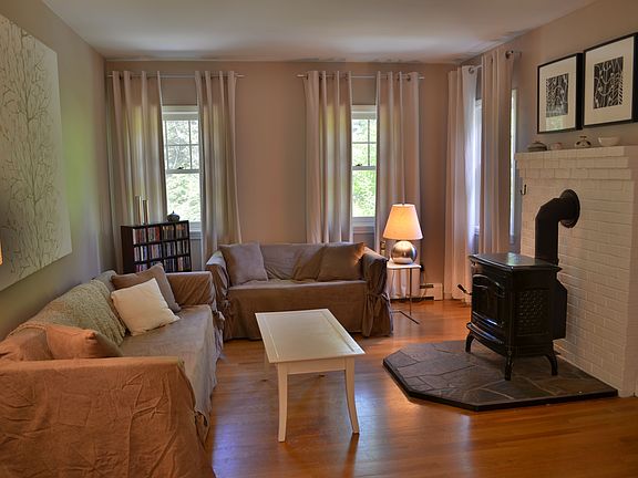 LOCATION, LOCATION, LOCATION! Perfect, private setting located at the end of Camp Sunapee Road and only a short walk to Bucklin Beach on Little Lake Sunapee and it's about a 3 minute drive to downtown New London! The home is a classic cape with gleaming hardwood floors, open concept living, tons of natural light, a screen porch and a huge bonus/entry room. The heart of home features a large kitchen with huge island, glass tile back splash, new stainless appliances and a spacious eat in area, which is all open to the screen porch and cozy family room with wood stove and hearth. There is a combination dining room and living room with new woods floors, built ins and a wood burning fireplace. The bedrooms are very generously sized and the master suite is privately situated over the garage with hardwood floors, a walk in closet and it's own bath w/tiled shower. The daylight, lower level offers a home office and this house has Comcast cable Internet. Low maintenance yard with nice gardens! Brokered And Advertised By: Country Houses Real Estate Listing Agent: Joseph Burns