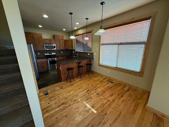 ** Beautiful South-facing corner unit with tons of upgrades! Hickory floors, knotty alder cabinets, doors and trim, quartz counters, stainless steel appliances, vaulted ceilings. Includes a 1 car detached garage and an unfinished basement. Sit on the wrap around porch and enjoy mountain sunsets. The clubhouse includes a hot tub, pool and fitness center! Water/Sewer, trash, and lawn care are included! Tenant pays gas, electricity, and any internet or cable. One small dog allowed with $300 pet deposit and $35 monthly pet rent. Under 35lbs, and over 2 years old. Requirements: Good credit history, 650 or higher credit score, household income at least 200% the annual rent, good landlord references or current home owner, ability to pass a criminal background check. All requirements will be verified. Equal Housing Opportunity Provider. Benjamin Wishart Employing Broker. The prospective tenant has the right to provide to the landlord a portable tenant screening report, as defined in section 38-12-902 (2.5), Colorado revised statutes; and if the prospective tenant provides the landlord with a portable tenant screening report, the landlord is prohibited from charging the prospective tenant a rental application fee; or charging the prospective tenant a fee for the landlord to access or use the portable tenant screening report. Any portable screening report must be completed within 30 days of the application date. The screening report must be made available to the landlord at no cost directly from the consumer reporting agency or through a third party website that regularly engages in providing consumer reports. **By texting "INFO Carina", you consent to receive communication from C3 Property Management via SMS/Text Messages. You may opt-out at any time by texting "STOP". We will respond to "HELP" requests if the request is in regard to the property listing. Responses will be during normal operating hours.