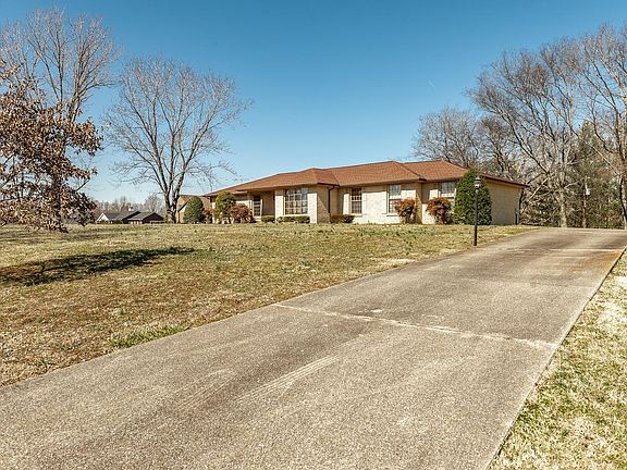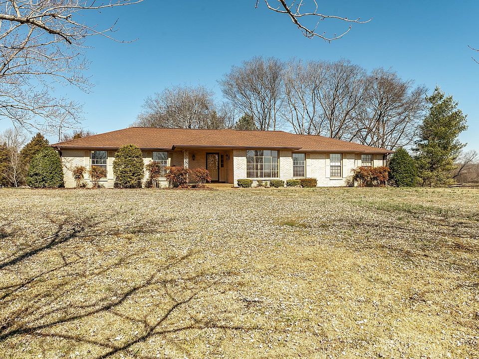 Showings start Friday, 3/4! Single level, all brick, mid-century rancher sitting on almost 2 beautiful acres! NO CITY TAX! 1900 square feet, 4 bedrooms, 2 full bathrooms, Open formal living room, Large den with tongue & groove wood ceilings, gas fireplace and access to back patio! Eat-in kitchen and separate formal dining room. 2 car rear entry garage with an abundance of storage above the garage! Storage building will remain! Inspections welcomed but selling "as-is".