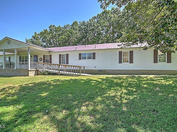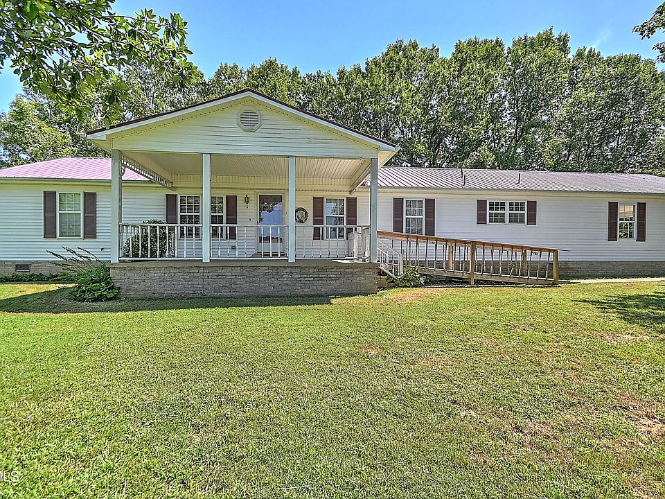SELLING AS IS. PRICED BELOW APPRAISED VALUE on a PERMANENT BRICK FOUNDATIONThis gorgeous home situated on 6+- acres has the MOST AMAZING VIEWS! LARGE manufactured home with 3 bedrooms, 2 bathrooms, ADDED SUNROOM, Den with fireplace (propane) Large living room/ dining room, kitchen with ample counter top space and cabinets, kitchen island and crown molding throughout. Primary suite has double vanity soaking tub and separate shower with tile floors. Laundry room has a utility sink. Covered front porch to sit and take in the views of the mountains. Outside has a large/garage/workshop with concrete flooring and electricity. Plus there is a horse shed and attached double gararge. House is on a well, city water is at the road. Home has a metal roof and is MOVE IN READY.