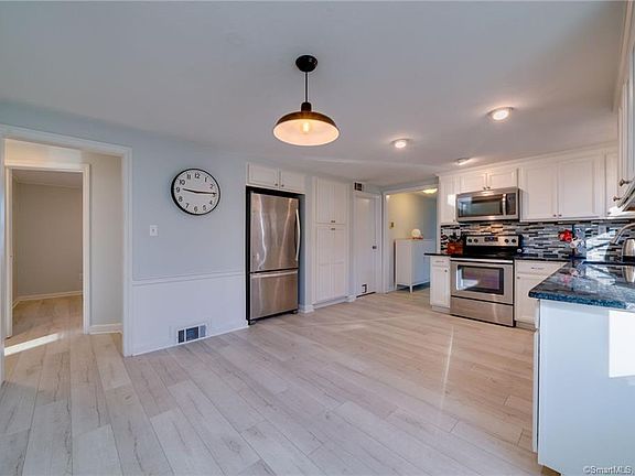 Back to the market due to change in buyer circumstance. Welcome home! Move right into this 3 bedroom fully and tastefully updated, meticulous, RENOVATED ranch. Located in a neighborhood with luxury properties valued above half a million dollars (recent listings close to one million dollars!), this is one of the most desirable neighborhoods in Newington. This home offers great space, privacy, functional living, and amazing views on an oversized half acre lot. Enjoy the natural gas heating, central AC, BRAND NEW wood floors throughout. BEAUTIFUL chef's kitchen with gleaming granite countertops, custom cabinetry, & stainless steel appliances is an entertainer's dream. Remodeled front to back Living Room/Dining Room combo with fireplace and sliders out to the large deck and back yard will delight in every season. Separate laundry room with butler's pantry also offers walk out to the LARGE back yard. This home offers an attached two car garage, raised beds for a garden, a firepit, and a storage shed. Easy access to commuting routes to Hartford, Springfield, and New Haven. Don't wait, schedule your showing today, this dream home will NOT last long!