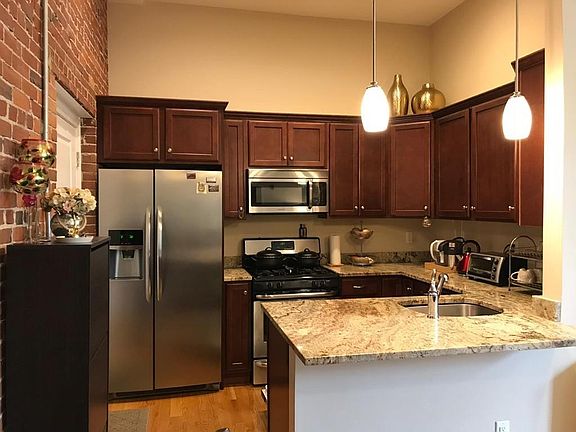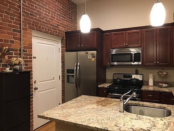 OPEN HOUSE CANCELLED!! GORGEOUS 1st floor corner unit at the 2014 converted North School building. Almost NEW private 11 unit community set on a residential neighborhood. UPGRADED 2 bed/ 1ba unit comes with a PRIVATE PATIO (one of only three has this exterior feature), high ceilings, beautiful exposed brick wall, large windows, hardwood flooring, ceiling fans, granite counters, stainless steel appliances and in-unit laundry. Common basement provides additional storage and unit comes with 2 assigned parking spaces with additional guest parking spots available.