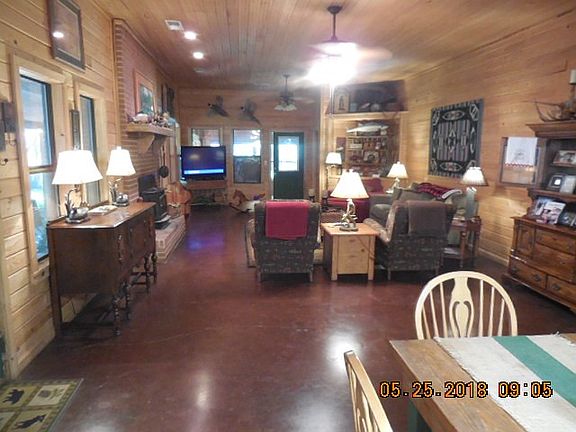Home within 5 minutes to Sardis Upper Lake & Holiday Lodge Restaurant. LR/ kitchen view w/stained concrete floors. Spacious master bedroom with a huge 20'x10' master closet Separate kids den/gameroom. Sit and relax in the 20'x9'4'' sunroom or under the 46'6''x10' front porch. The back yard is beautifully landscaped with a 46'6"x10' covered back porch & also has a concrete patio area that has a Pergoloa. Property also includes a 12'x20' storage shed & a metal workshop that is 40'3"x54'3" with a 10'6"x69' lean to that has 2 garage doors and a walk through door.