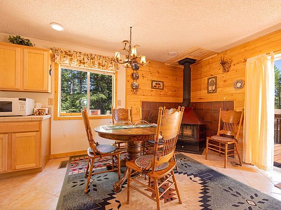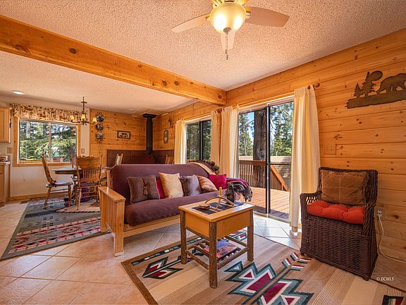 Experience affordable mountain living! Four bedroom, two bath, two level gambrel, .53 acre lot property in Meadow View Estates. Main floor hosts living room, kitchen, dining room, full bathroom and one bedroom. Nice use of tongue and groove with 768 sq ft on main level and 376 sq ft upper of spacious appeal. Nice deck to entertain and enjoy the surrounding beautiful forest . Upper level has three bedrooms and bath. Two bedrooms share a lovely deck. Home has wood burning stove and washer and dryer on main level. Enjoy cool mountain evenings next to fire pit and towering Ponderosa Pine. Year round access and RV/trailer parking allowed.