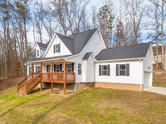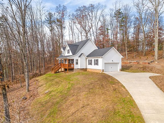 Welcome home to this traditional farmhouse style house built in 2018! Only twenty minutes to downtown Chattanooga, and just five minutes to the nearest boat dock. 195 East Highwater is perfectly situated high on a hill and includes almost an acre and a half of woods on three sides. Grab a seat on your rocking chair and enjoy the views of Tennessee's rolling hills! The front door opens to a cozy den with cathedral ceilings. The kitchen is well appointed with all stainless-steel appliances, gas stove, white kitchen cabinets and beautiful granite countertops. Enjoy eating and entertaining at the kitchen island large enough for four; there is also plenty of room for a farmhouse-style kitchen table! Double doors lead to a beautifully stained outdoor deck. The primary bedroom is conveniently located on the main floor. The ensuite bathroom includes modern features: a separate shower lined with subway tile, a tub, double sinks, toilet closet, and a spacious walk-in closet. There is a tankless water heater which provides limitless & immediate hot water for your showers and laundry. There are two additional bedrooms, bonus room, and a full bathroom upstairs. All bedroom closets are outfitted with custom shelving and drawers. A beautiful home waiting for a new owner!