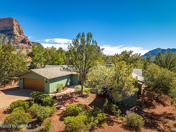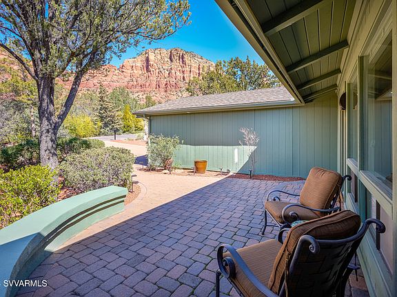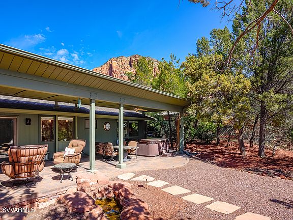 Upgraded home on oversized lot backing to National Forest for ultimate privacy - all with direct views of the surrounding red rocks. Massive backyard with full length shade structure to increase living space and provide an ideal spot for lounging in Sedona's four mild seasons. Private, secluded neighborhood in the Chapel area of Sedona (the only part of town without commercial property nearby) ensures low traffic and quiet evenings. Efficient home with split bedroom floorplan gives you privacy from your guests, but the views and neighborhood will make your visitors want to overstay their welcome. Backyard spa overlooks babbling brook and miles of national forest dotted with mesas and buttes for your own Southwestern desert getaway.