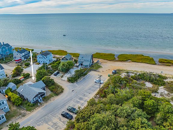 Just steps to beautiful Cape Cod Bay, sun and fun in the sand, breathtaking sunsets ... you name all things beach and summer and it's right here! A fabulous property offering 2-bdrms, living and dining rooms, kitchen, private back deck with pergola and quintessential screened front porch ... the perfect spot to hang out and watch the comings and goings. New heat pump, a/c plus washer, dryer, cathedral ceilings, shed and best of all - gorgeous high tide water views. This is the meaning of summer and beach life!
