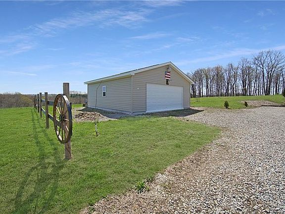 THIS 3 YEAR YOUNG 3 BEDROOM, 2.5 BATH RANCH HOME BUILT WITH 2X6 FRAMING TO ALLOW FOR EXTRA INSULATION; AN ADDITIONAL 2 CAR DETACHED GARAGE ON 15.756 ACRES IS WAITING JUST FOR YOU. THIS 15+ ACRE PARCEL IS SURROUNDED BY THE REMAINDER OF THE SELLER'S ORIGINAL 106 ACRE FARM. THE HUGE 30X22 GAMEROOM IS HEATED BY A WOOD BURNING STOVE AND ELECTRIC BASEBOARD HEAT. NO AIR CONDITIONING IN THE GR BUT SELLER STATES IT IS ALWAYS COOL. FOUNDATION IS A 14 COURSE CEMENT BLOCK TO ALLOW FOR A HIGHER CEILING. TWO EXTRA STORAGE AREAS AND A HALF BATH COMPLETE THE LOWER LEVEL. SIT ON THE REAR DECK OR FRONT PORCH AND ENJOY AMAZING VIEWS ALL AROUND YOU. HERE IS YOUR CHANCE TO OWN YOUR VERY OWN PIECE OF HEAVEN.