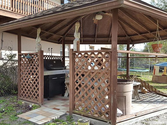 - Exterior Features: Storm Shutters, Balcony - Unscreened, Fence - Chain, Gazebo