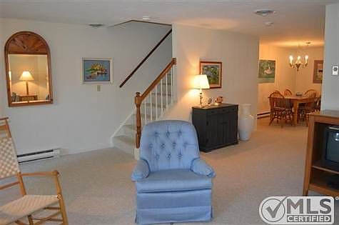 End unit. Two-bedroom, 2 1/2 bath condo has been well-maintained and lightly used. The living room with working fireplace, 1/2 bath, and kitchen/dining area with sliders to patio make up the first floor. A spacious master bedroom with private bath and second bedroom also with private bath, walk-in closet, and deck are located on the second level. Additional features include: ample storage, ceiling fans, finished basement, central A/C, and central vac. Brokered And Advertised By: Real Estate Associates Listing Agent: Patricia Lyons