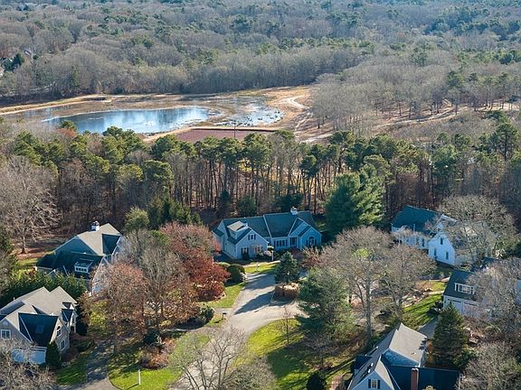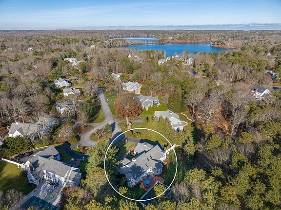 Coveted mid-Cape pondside, Indian Lakes/Herring Run Association neighborhood in the bucolic village of Marstons Mills; Discover this awesome property tucked on a cul-de-sac with wooded open space to the rear. Popular Bayside built 4 bedrooms, 3 ½ bathrooms design; first floor primary bedroom with private bathroom; Comfortable and inviting, open great/living room with hardwood floor, gas fireplace, deck access; Formal dining room; Large kitchen with granite countertops, hardwood floor, stainless steel appliances, center island, pantry, dining area; There is a first-floor laundry. Versatile second floor one-bedroom suite with full bathroom and sitting area. Outdoor living: private setting, landscaped backyard, patio area with heated pool, deck with retractable awning, fire pit, outdoor shower. Enjoy neighborhood amenities: nearby Middle Pond beach; bocci court, kayak storage, pickle ball/tennis court; explore herring run and flume. Experience a well-cared for home.
