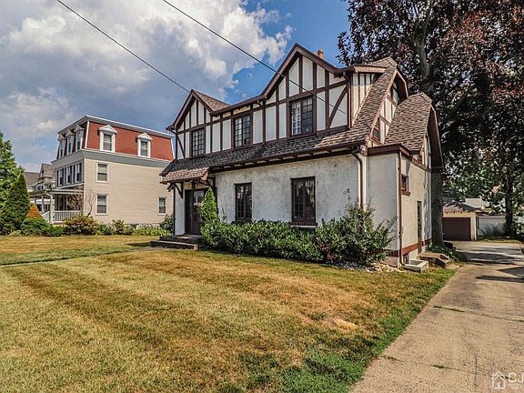 Old world Charm abounds in this Tudor Home. Features include Sitting Room with tiled floor and custom tiled inlay. French doors to Living Room with wood burning fireplace, Formal Dining Room with beamed ceiling,gas fireplace and leaded glass windows.2 Staircases leading to the 2nd floor. Hardwood flooring throughout.