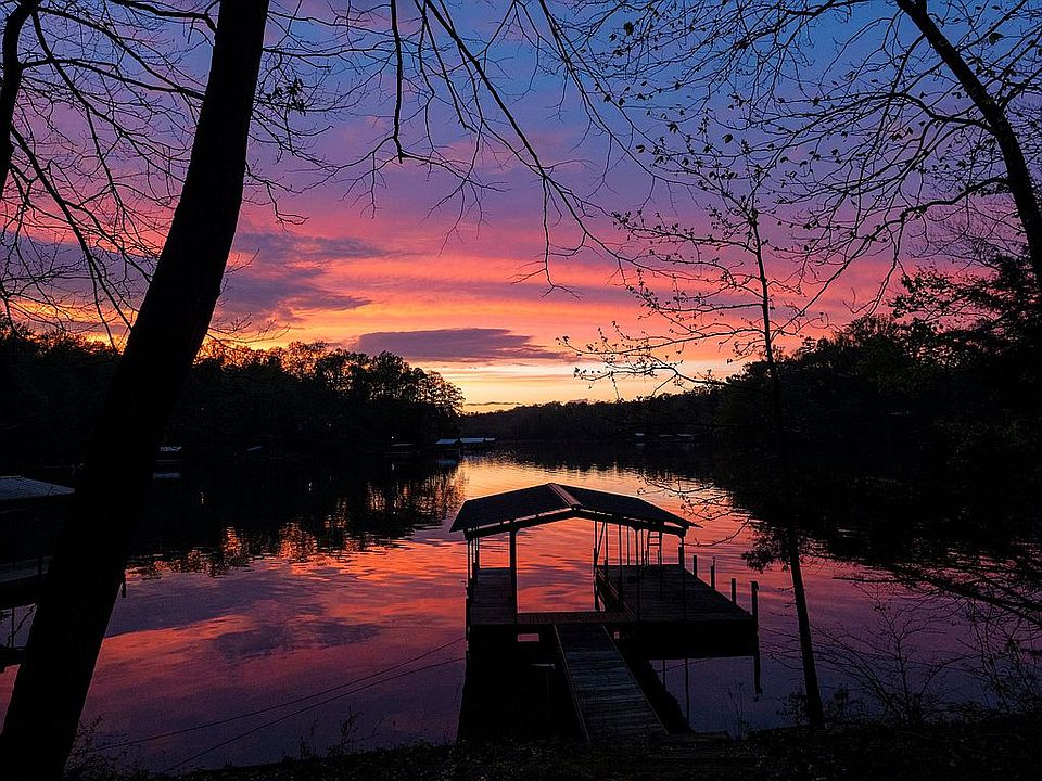 3 BR 3 BA water-front property on Lake Hartwell (Gumlog Creek area). Convenient (5 minutes) to I-85. Enjoy sunsets from the full deck and screened porch overlooking the lake or the covered 24’ boat dock on the water. “Log cabin” exterior approx 1485 sq ft on main floor with full walk out basement. Gentle slope to water on paved walkway. Bay window view from breakfast room; inviting front porch with swing & rocker; 2 car garage with storage room. Property includes boat house with shed, EZ Port PWC dock, circular paved front drive, approx ½ acre plus Corps frontage with 140’ of shoreline. Full basement has wood stove, bath & separate work sink area, walk-in cedar closet and is suitable for recreation, workshop, storage or additional living space.