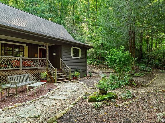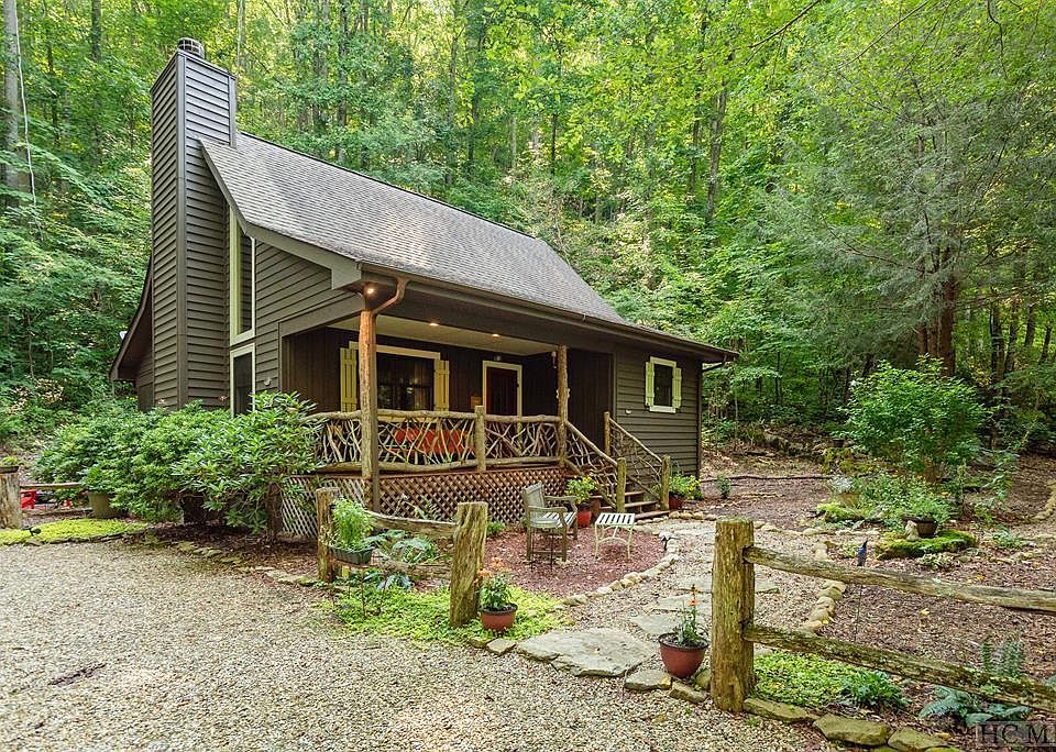 Your charming, cozy cabin in the woods awaits! Walk past the split-rail fence, along the stone path, to the front porch with twig railings and discover this well-maintained home, privately nestled on more than an acre. Settle in with a good book and a beverage in front of the stone, wood-burning fireplace and take in the views from the windows that lead up to the vaulted ceiling. Or, head to the screened back porch or fire pit and listen to the sounds of nature. Featuring two bedrooms - one on the main level and one upstairs - and two full baths, it is located off Highway 107 North, approximately 10 minutes from the delightful restaurants and shops in Cashiers. It would make a great getaway or rental - an easy "lock it and leave it" retreat.