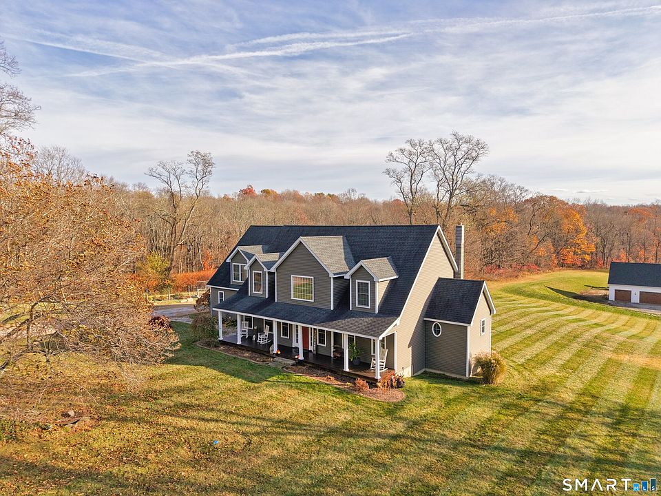 This custom-built 2015 home offers over 3,900 square feet of magnificent living space, with 4 bedrooms and 3.5 baths. The open-concept layout is enhanced by reclaimed wood, beams, and granite from the original farmhouse. The kitchen features custom cabinetry, a brick backsplash, French-door pantry, coffee bar, and a striking live-edge island, opening to the dining room and a bright family room with cathedral ceiling and granite-hearth fireplace. The main level includes the primary suite with walk-in closet and full bath with dual vanities, plus a study with French doors, mudroom, half bath, and laundry. Upstairs are two freshly painted oversized bedrooms with large closets and a shared full bath, along with an open balcony overlooking the family room. The property also includes a freshly painted full in-law apartment with its own kitchen, living room, bedroom, bath, and laundry-ideal for extended family or rental income. Additional features include central air, central vac, a multi-fuel furnace (coal/wood/propane), heated two-car garage, pole barn, fenced garden, and chicken coop. Enjoy country living with nearby hiking trails to Nonnewaug Falls and opportunities for snowmobiling, quad riding, and sunset views. Call today to schedule your own private tour - you will love it!