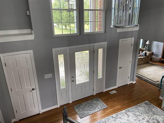 Spectacular Home on over 2 acres. This fantastic two story offers 4 bedrooms,2 1/2 bths. The beautiful CHEFS KITCHEN is the heart of this home, it opens into a large breakfast area and two story great room that walks out onto the back balcony overlooking the tree-lined yard. The master is located on the 1st floor and offers an attached beautiful bath and walk-in closet. The master bath boast exceptional tile work with a separate tub and large walk -in shower. This home offers 2 LG LAUNDRY ROOMS. The home is approx. 30 mins to Cincinnati and 45 mins to Louisville. Approx 3400 Sq feet.