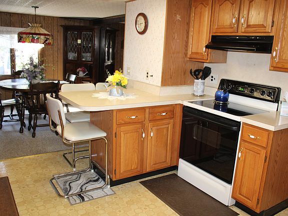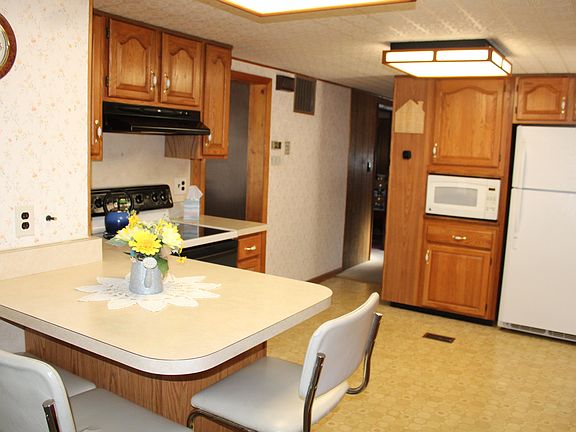 Charming 3 bedroom, 1 bath doublewide mobile home with spacious addition. Comfortable & practical. Large addition with family room & third bedroom, currently utilized as a den/bar. Propane stove in family room. Electric, OHA, propane stove gives option for heating in the winter. Central air for the summer heat!