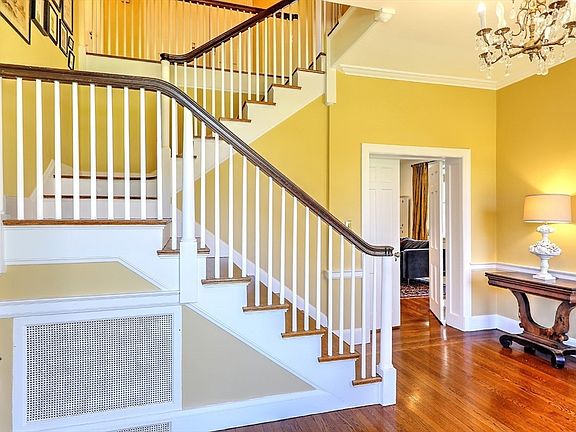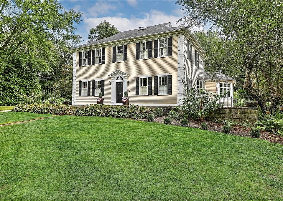 Step into the entry hall to the right is a living room with bay window overlooking the beautiful grounds. At the back of the house is a fully equipped chef's kitchen with center island, white wood cabinetry, stone counters and professional appliances. The adjacent family room has a gas fireplace, radiant floor heating and walls of glass flooding the space with natural light. The perfect backdrop for entertaining family and friends. Completing this level is a formal dining room with crown molding and a chair rail as well as a powder room. Upstairs you'll find three generous bedrooms and three full bathrooms including a sumptuous primary suite with private bath and dressing room. The third level has a bedroom and full bath. Step out to the grounds which includes a guest house with kitchen, living area, bedroom and bath. The manicured gardens offer several specimen plantings including a Japanese Pine, varieties of Hosta and a blueberry orchard all surrounding a saltwater pool.