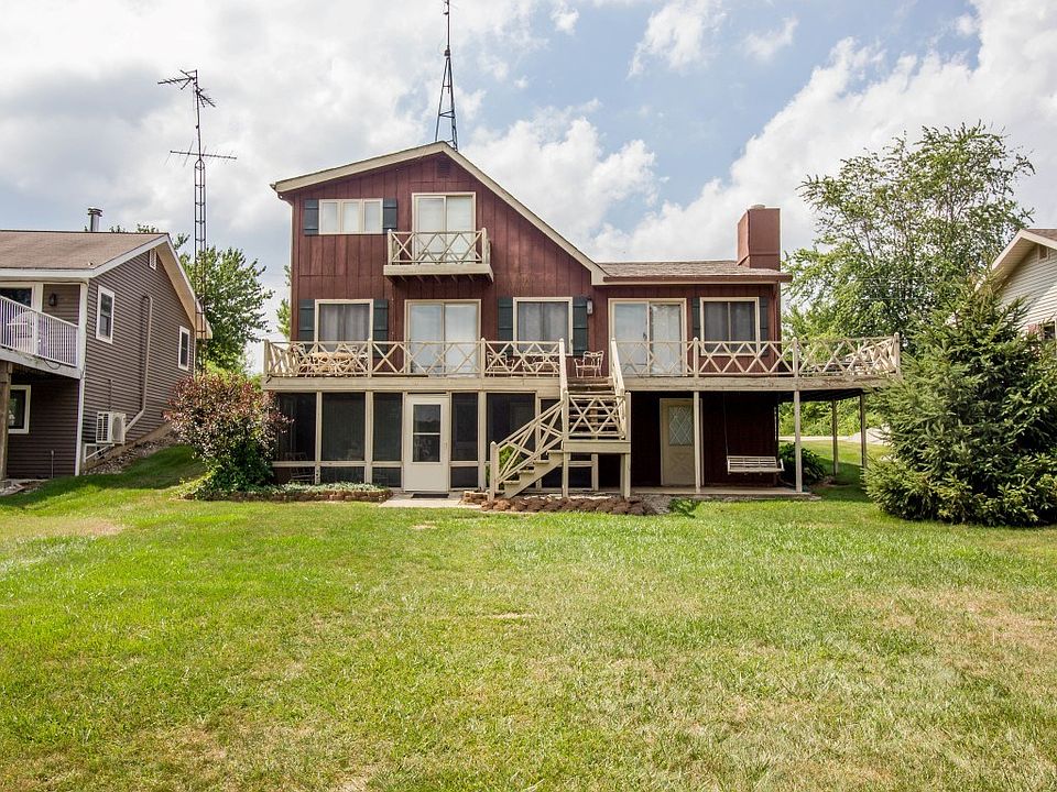 *What an amazing opportunity with this 3 Bedroom & 2 FULL Bath home plus a Walkout Basement that sits on one of the best level lots on Snow Lake! *With just over 3,000 sq. ft. of space, this truly could be an all around family lake home. *Humongous Great Room with vaulted ceilings and a fireplace feeds into the dining area with a deck that stretches across the entire back of the home plus a screened in porch underneath that! *Awesome storage area lakeside for all the yard furniture and water toys. *There is an extra waterfront deck for lounging around and just relaxing right by the water. *Great sandy beach with 70 ft. of waterfront and beautiful views make this a great place to live. *Level lot without any steps down to the water with a ton of entertaining space in the yard. *Walkout basement has a Family Room and game closet plus a nice storage area. *One Bedroom on the main level with a full bath plus two more bedroom areas upstairs that currently share the other full bath. *Extra parking could fit up to 6 cars too. *Some TLC is needed and the home is priced accordingly and being sold as-is.