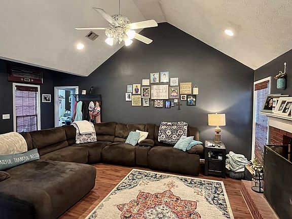 4 sided brick home in Smiths Station! Take a look at this 3 bed, 2 bath home with split floorplan. This home features a spacious family room with vaulted ceilings, brick fireplace, also a formal dining room, beautiful kitchen with stunning granite countertops, SS appliances, and breakfast nook. The bedrooms are all of good size, the front bedroom features a vaulted ceiling and the back bedroom has a fantastic view of the back yard. The spacious primary bedroom features tray ceilings, and a unique en-suite bathroom. This bathroom has the unique concept of separate vanities with a soaking tub in the center. There's also a stand alone shower with bench. There's also a back door access to the separate water room for easy restroom access while swimming! The back yard has plenty of space for company! There's a covered patio, fire pit area, gazebo, and seating space around the pool! Come enjoy the last bit of summer this year and prepare to enjoy many summers beside the pool!