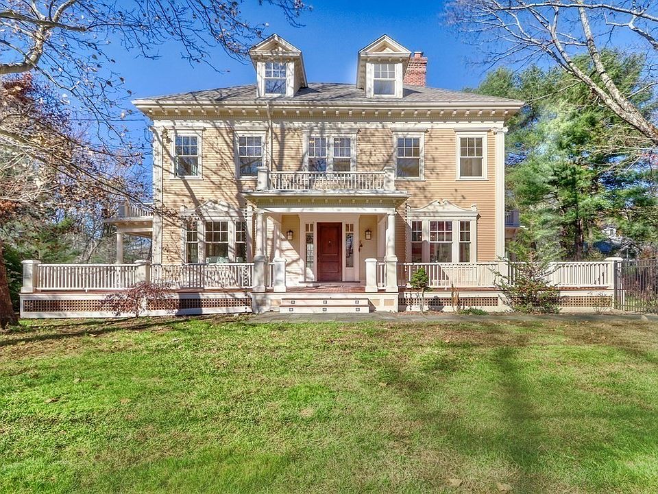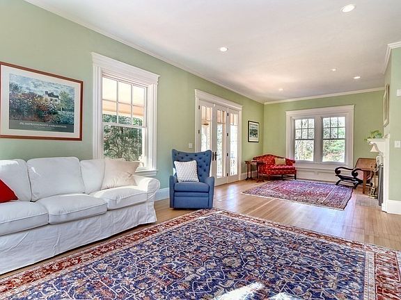 This elegant landmark home, sited overlooking a private pond, is graced by ten-foot ceilings and a turned center staircase, four fireplaces and expansive porches. Conveniently located in the heart of Lincoln, yet feels like Cambridge in the country! All the village-center amenities meet the bucolic back yard for tranquil vistas, only steps from Codman Farm and Mass Audobon's Drumlin Farm. The warmth and functionality of the customized kitchen, luxurious master bath, extensively renovated systems, and open fully-finished walk-out basement cultivates an easy, comfortable lifestyle. Bright sun streams in through grand windows, and mahogany wrap-around porches bring the outdoors in. Stroll to the train, trails, groceries, cafe, etc. or enjoy your private, fenced, landscaped outdoors! Imagine the fireflies over the field! Host elegantly, live comfortably!