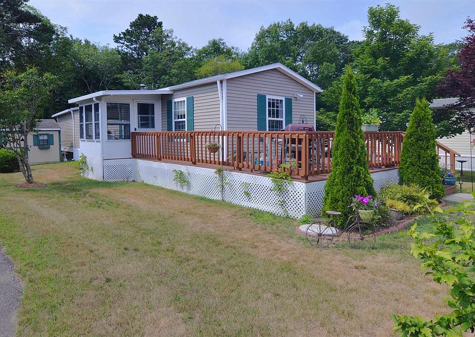 Adorable ranch with new hardwood floors throughout the home, 4 season sun room/ tree house like bedroom overlooking wooded open space, large deck and entry sun room facing east. Located in a 55+ land lease village south of scenic Worden's Pond. Minutes to South County Beaches, URI, many recreational and cultural venues. Friendly, safe, scenic and affordable life style, with Clubhouse, bocce, horseshoes, shuffle board...