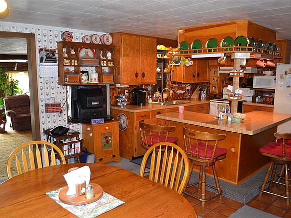 Crooked Lake home with 60ft of frontage could be yours! This home has a huge living room with wood burner fireplace. Opens to a waterfront deck! Kitchen has wrap around bar seating and an additional dining area for lots of guests. Kitchen also has an abundance of cabinet space! It also features 2 large bedrooms, 2 bathrooms, and a nice laundry room all on a main level. Car port is over sized allowing 2 cars and additional storage for water toys and lawn care equipment. 3 Sheds for all of your woodworking, gardening, and hobby needs! Waterfront is landscaped with raised beds for gardens!