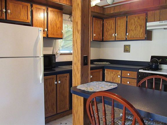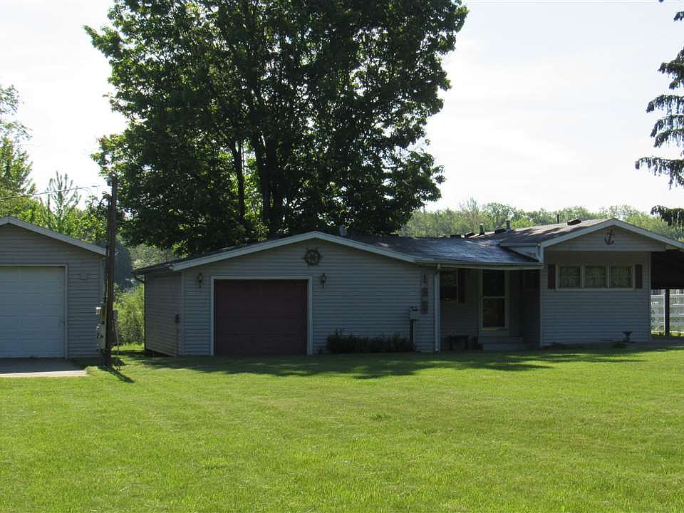 Now's your chance to own an affordable property on a beautiful lake! Approximately 40 ft. of lake frontage with actual access to 100 ft. This home sits on almost an acre to enjoy all year long! This 2 - 3 BR home boasts a spacious family room, and kitchen with oak cabinets, stove and refrigerator. New pressure tank. Most furnishings throughout the home will remain. Plenty of storage with the attached garage plus a detached garage that was added in 1999. Additional covered patio area (approx. 13x60) would be great for entertaining. Gorgeous views all around of an awesome fishing lake. Immediate possession!
