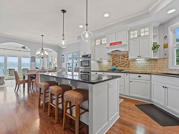 Stunning custom built home that features incredible views on beautiful Lake George. This home has been meticulously maintained since it was built in 2011. Watch the beautiful sunrises overlooking the lake from the patio or sunroom before heading outside for the day to enjoy swimming, fishing, sailing, or whatever water adventures you enjoy. The kitchen features Harlan cabinets, granite countertops, and a 3-way fireplace while being open for entertaining to the living room and sunroom. The primary suite features a phenomenal view of Lake George, vaulted ceilings, jetted tub and walk in closet. All 4 bedrooms are located on upper level with a separate laundry room. An office on the main level provides an extra space for work or a quiet space to hangout. This home is just waiting for new owners to enjoy "lake life."
