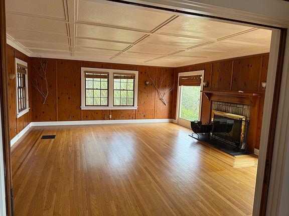 Sun roomWide windowsBeautiful wood floorsBeautiful stand alone houseRustic charming wood walls