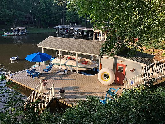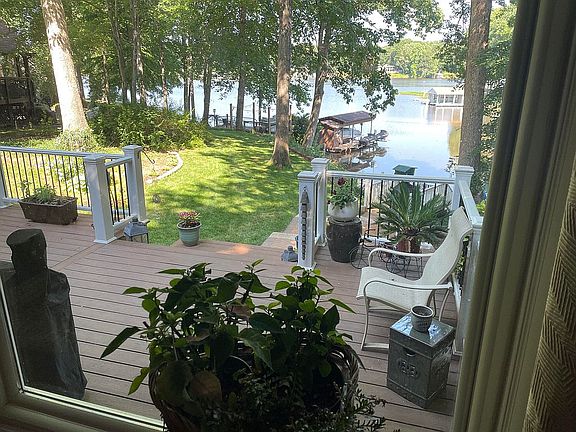 120 feet of bulkhead lakefront, gravel driveway, pleasing landscaping, 160 sq ft composite deck, detached garage, great view of Poplar Creek, large dock with covered boathouse