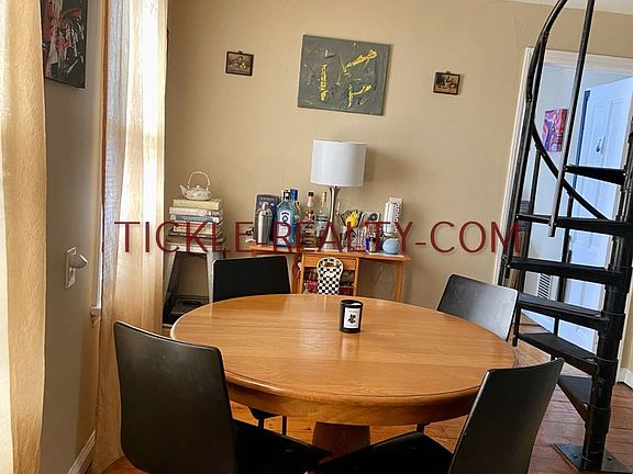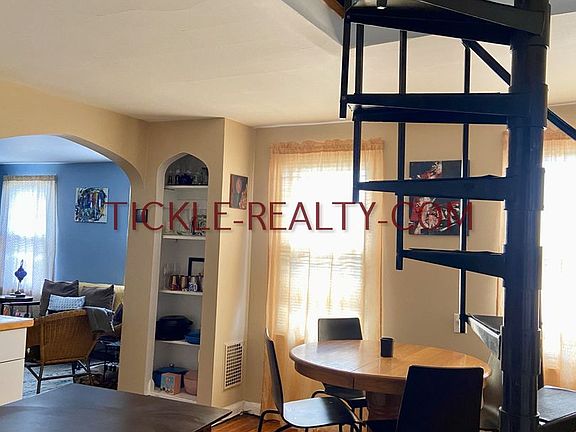 Two-bedroom apartmentOff-street parkingOne bathroomUnique spiral staircaseCeramic tileHardwood floorsEat-in kitchen with dishwasher