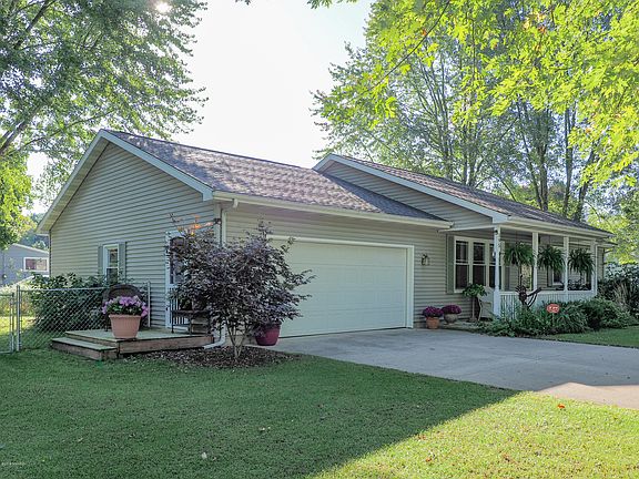 Very nice open floor plan well maintained ranch home with new windows and new laminate flooring. Home has attached two car garage with extra deep area for storage. New slider leading out to new deck 14 x 22 and fenced backyard. Main floor laundry and Stainless Steel Appliances, including over the stove microwave and a dishwasher. His and hers closets in master bedroom, master bedroom has separate entrance to main floor bathroom. Full Basement with an extra room for office/flex room. R/O system for the drinking water. Roof, Furnace and AC only six years old. Leaf Guard for the gutter system. Covered front porch area. Nicely landscaped yard and two storage sheds.